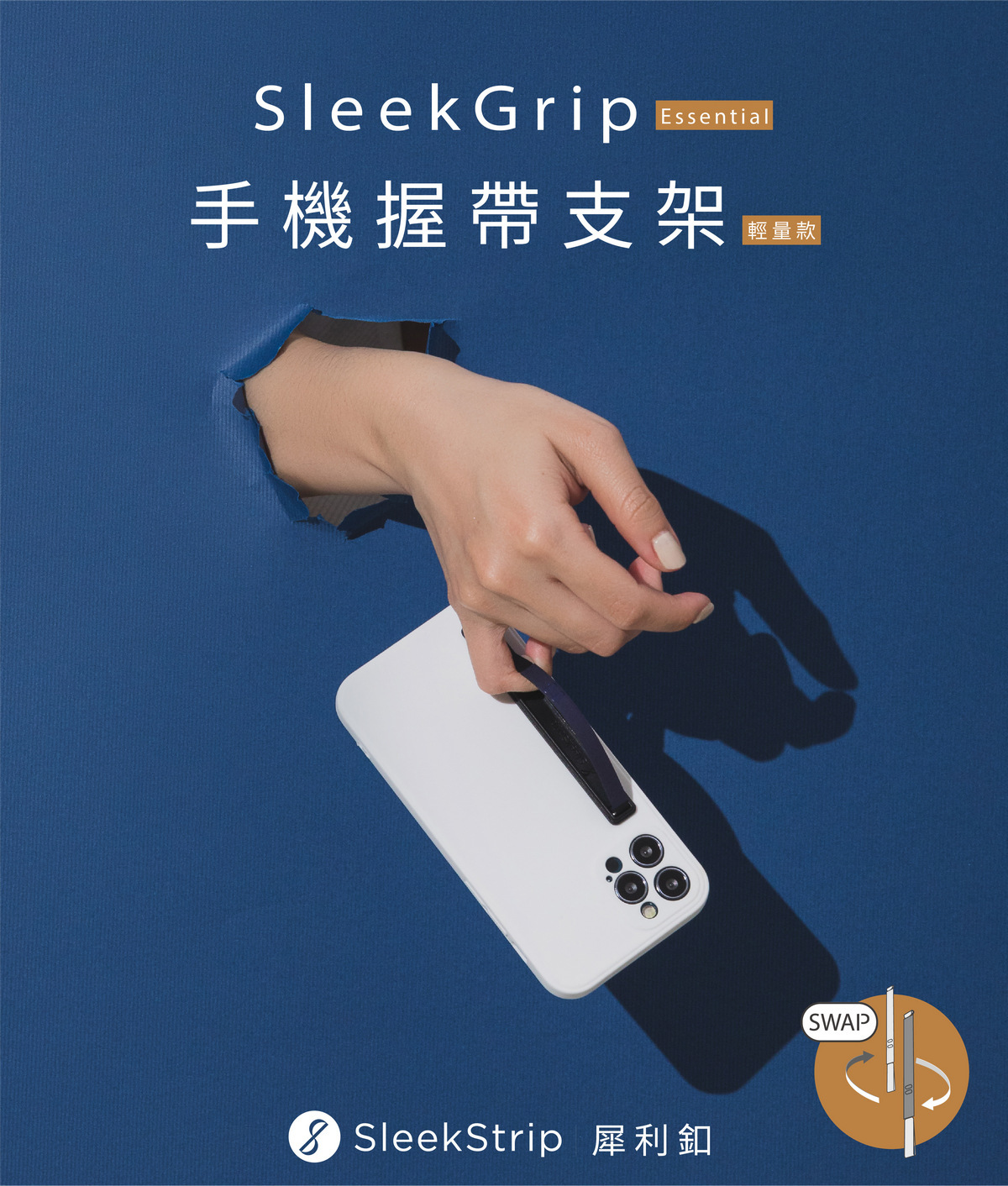 SleekGrip Essential 輕量款手機握帶支架 SleekStrip犀利釦的設計師深知現代人對手機配件的需求,不僅要功能強大,還要輕薄便攜。這款手機握帶支架的厚度僅有2.9mm,不會增加手機的負擔,也不會影響手機的美觀。超薄設計讓你在不使用時也幾乎感覺不到它的存在,保持手機的原有手感和外觀。