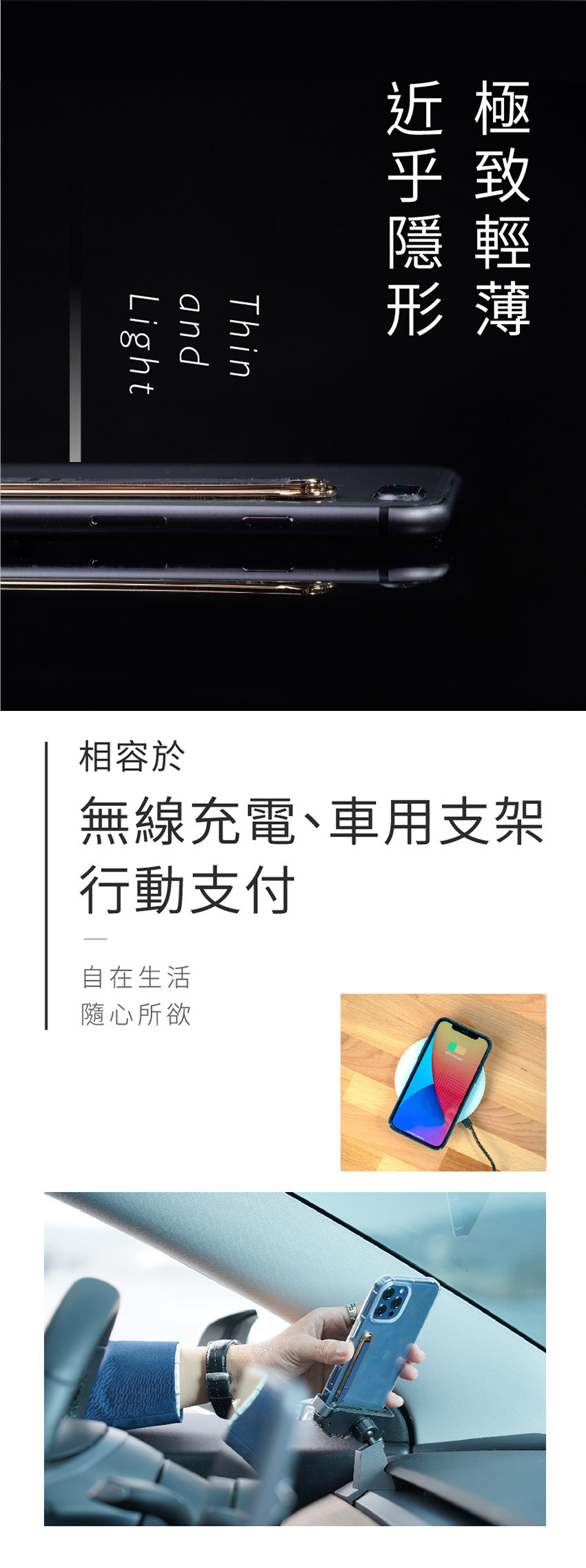 不影響無線充電、相容各式車用支架,超薄、無磁力,不干擾NFC功能,行動支付超暢通。