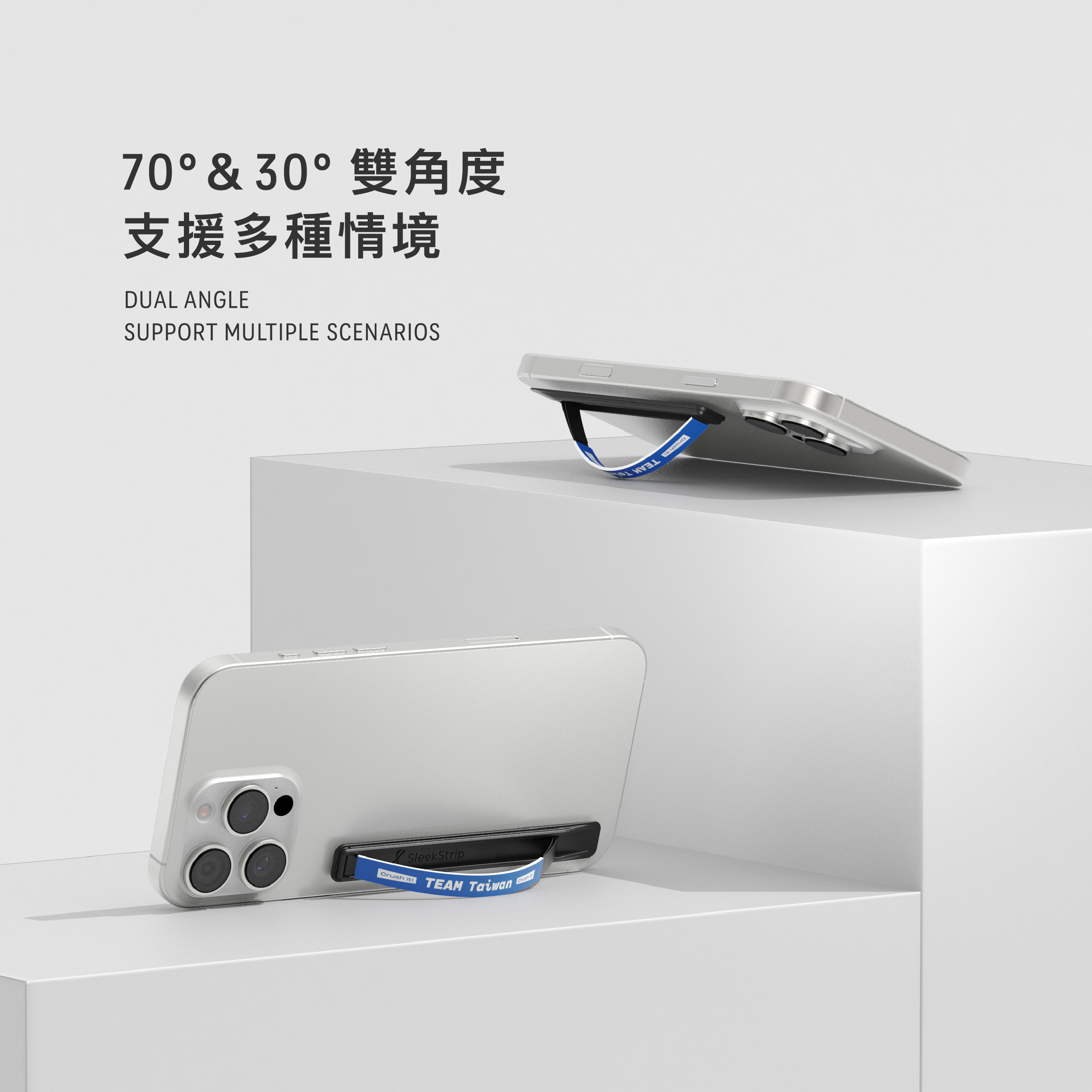 SleekGrip Essential 輕量款手機握帶支架 支援35度和70度雙角度立架設計,適用於多種場合。你可以根據需要選擇適合的角度,無論是觀看影片、進行視訊通話還是處理日常事務,都能找到最舒適的視角。這種多功能設計讓你的手機使用體驗更加靈活多變。